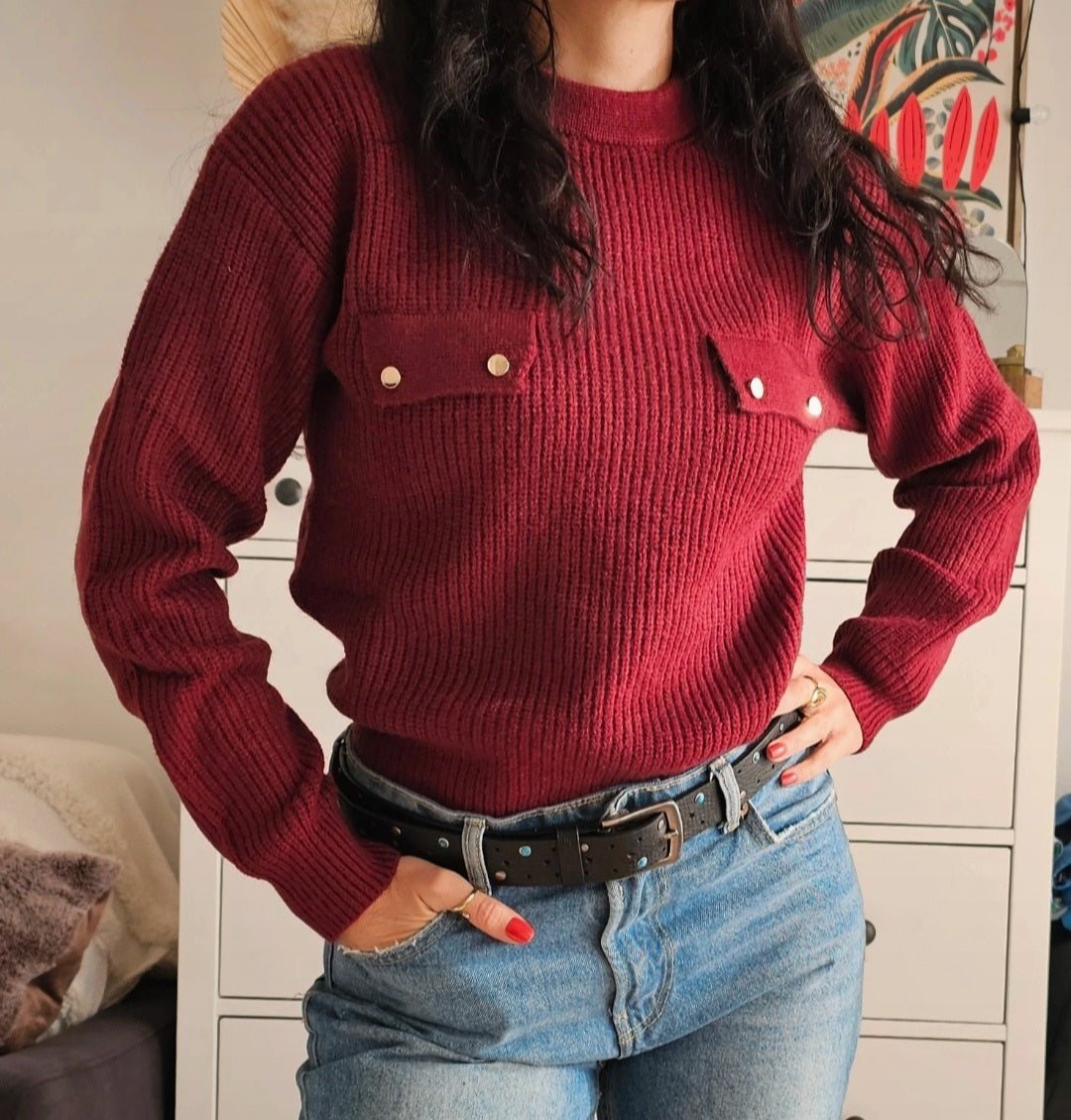 Pull bordeaux à poches dorées - Taille S